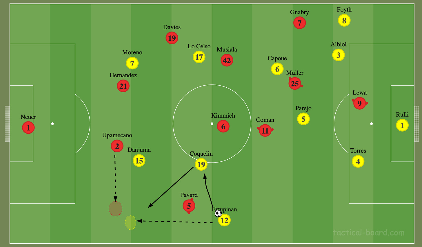 Now Pavard automatically gets closer to Estupinan(LB) who became free after Coman followed Capoue.